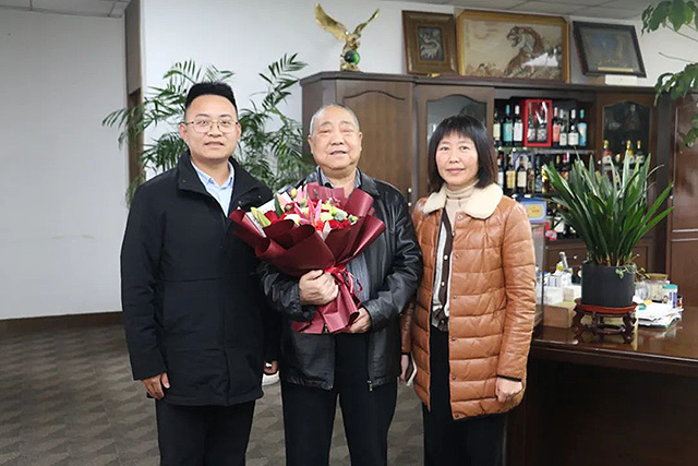 集團(tuán)黨委書(shū)記丁亞龍、工會(huì)主席肖麗琴向省勞動(dòng)模范、慈善楷模朱玉寶先生致以新春?jiǎn)柡颍≈煊駥毐硎靖兄x并祝宏寶全體員工春節(jié)快樂(lè)!闔家幸福!