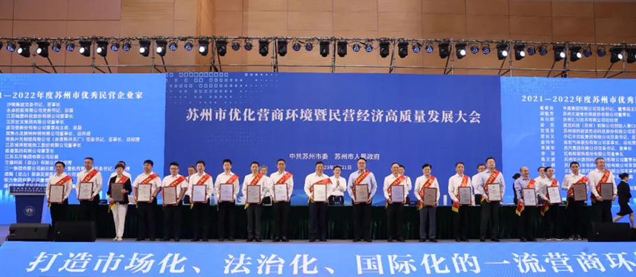 7月21日,蘇州市優(yōu)化營商環(huán)境暨民營經(jīng)濟(jì)高質(zhì)量發(fā)展大會(huì)對30名“2021—2022年度蘇州市優(yōu)秀民營企業(yè)家”進(jìn)行了表彰,江蘇宏寶集團(tuán)董事長朱劍峰獲得殊榮。 |